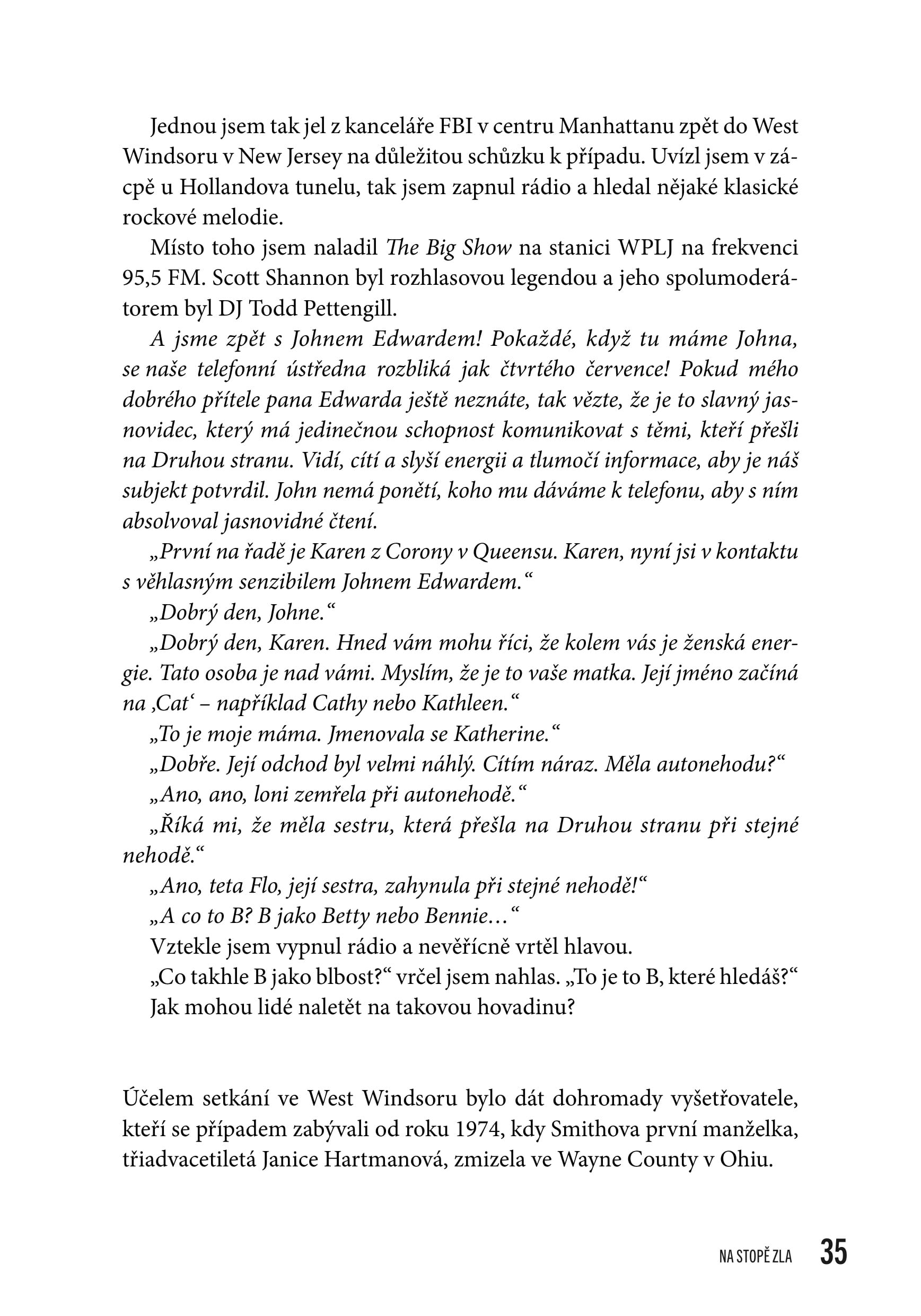 Kniha podle skutečných událostí, která sleduje neobvyklou spolupráci agenta FBI a média. Na jedné straně stojí muž, jehož svět je pevně ukotvený ve faktech, důkazech a výsleších. Na druhé straně muž, který tvrdí, že dokáže vnímat to, co je pro ostatní neviditelné.