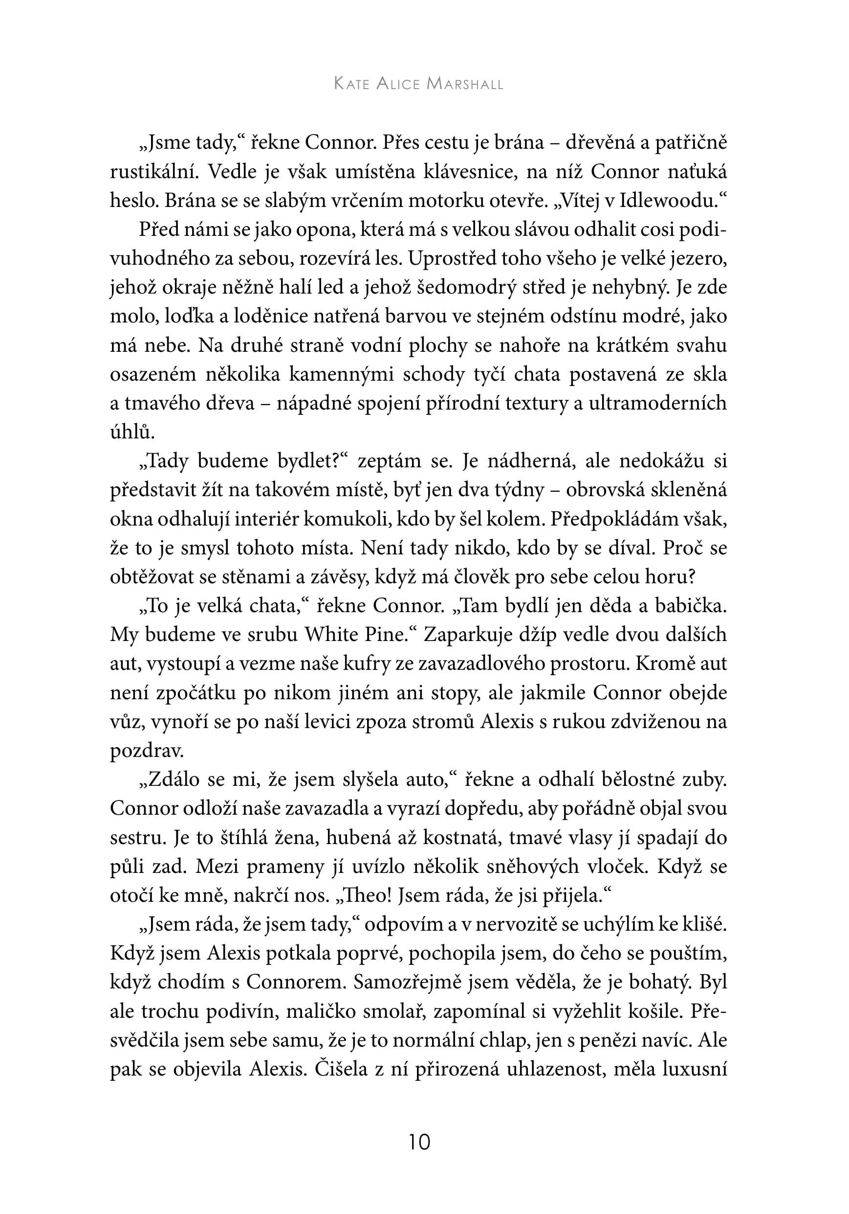 Atmosféra této knihy byla naprosto fantastická a na rozdíl od některých knih, které jsem četla v poslední době, jsem měla pocit, že Idlewood je samostatná postava, stejně jako lesy, které ho obklopují. Tajemství byla jednou z mých oblíbených částí knihy, stejně jako ohromující zvraty, které jsem vůbec nečekala. Byly to některé z mých nejoblíbenějších nesympatických postav, o kterých jsem četla, a v hlavě mi znělo mantrum, které Theovi říkalo, aby si dával pozor. Také se mi líbilo, že děj byl velmi originální, zejména díky zařazení Theových podivných nočních můr.
